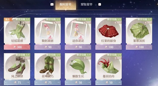 2.星海-限时星华:共计930星光结晶,包含两个动作及7个单品,其中单品焕新可获得焕新色
