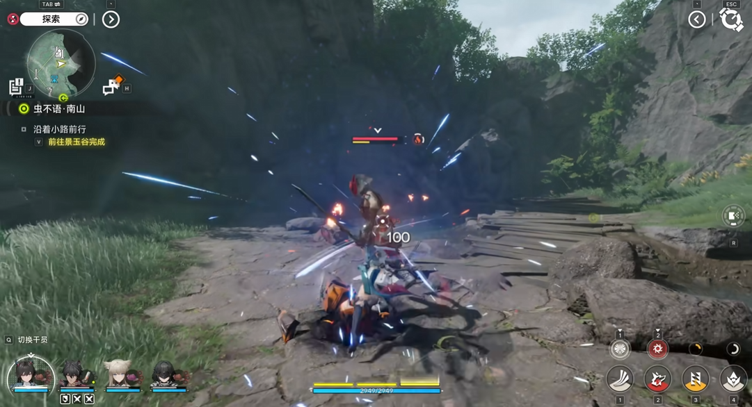 角色普攻为多段式连击,末段可主动触发重击,造成显著伤害提升。主控角色释放重击时,同步恢复技力并累积失衡值,因此完整打出普攻链是资源运转的基础环节。任意普攻阶段均可通过闪避取消动作,并派生出位移型闪避追击,该操作不消耗任何资源,但需精准把握重击触发窗口以实现循环稳定。