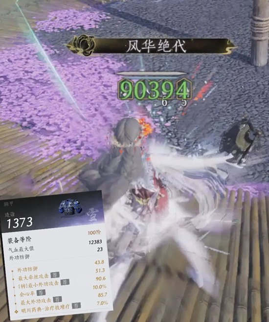 套装浣花套,套装效果需要满血触发加会心率,时雨套常态保持,开金身还有额外加成,两个套装根据自己的会心来带,会心不到75还是老实带花,会心能接近满的时候带时雨上限高