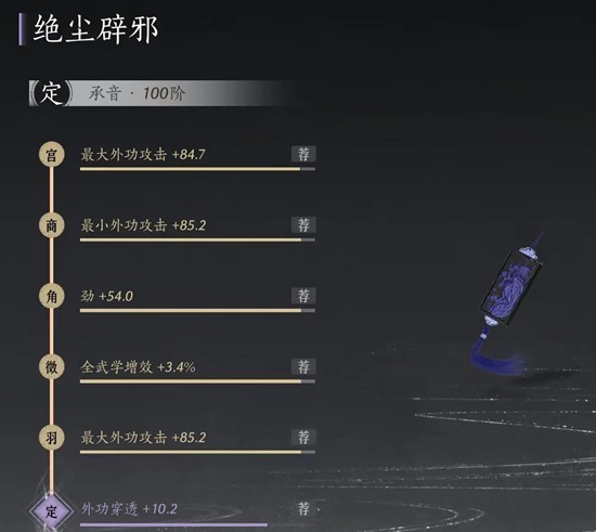 达成后优先追求外功和玩家增效、扇增效、全武增、大小牵丝 。定音左边外功穿透右边扇治疗技(重击)加成。