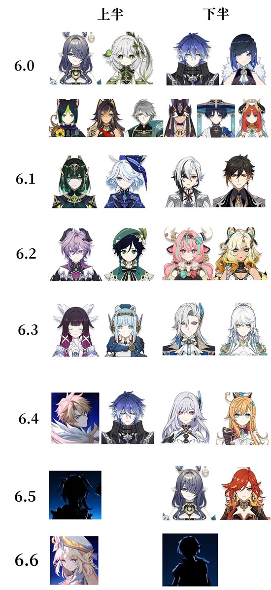 (四)6.4预测不会有神卡。神卡会一整个大版本各来一次,月神作为6.0的神,要在挪德卡莱出现两次,火神雷神还没有复刻,风神岩神草神水神都已经复刻,所以还剩下6.4 6.5 6.6 6.7 6.8五个版本 已知6.8不会有神卡(夏活版本),那么,6.5-6.7复刻火神雷神月神没问题,岩神和水神在6.1同时复刻代表未来除了6.8之外有一个版本是没有神卡的,极大概率就是6.4,给丝爱让路