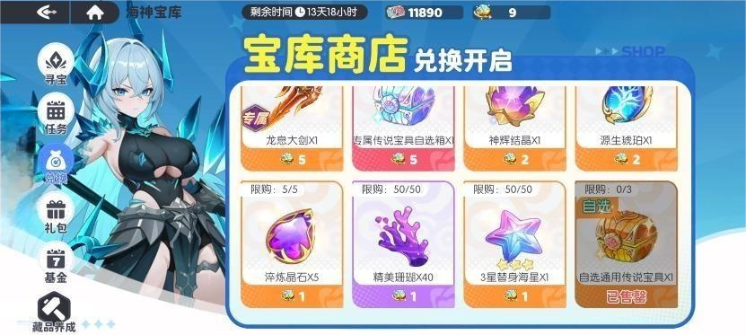 宝库商店支持通过抽卡寻宝机制获取稀有道具。其中,“传说宝具宝箱”与“专属武器大剑”为当前版本最具成长潜力的兑换选项,可直接强化角色核心输出能力;此外,多档位琥珀类材料可用于精准修正属性偏差,优化暴击率、穿透值、元素抗性等关键参数,从而实现战力结构的精细化升级。