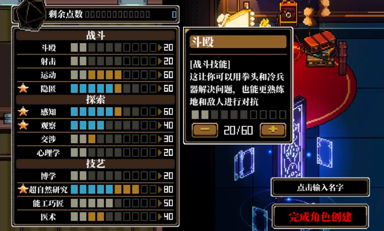 打手职业展现最强战术适配广度。其四维技艺——隐匿、运动、射击、斗殴——形成攻防一体的动态平衡:隐匿保障行动发起隐蔽性,实现先手压制;运动与斗殴联动提升近身缠斗稳定性与容错空间;射击能力覆盖中距离压制需求;独有的勒索技艺可在特定交互中降低目标精神抗性,并同步恢复自身状态,成为破局关键节点。该职业无明显能力盲区,是复杂场景下最富应变弹性的选择。