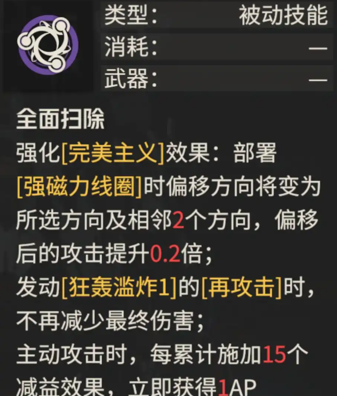 此外这个专武在菲娅天赋的改动上还加入了折射攻击的倍率提升,外加再攻击时的伤害提升,这些也一定程度上弥补了过去菲娅伤害不太好看的弊端,最后则在泼上了15次脏水后菲娅还可以获得1AP,这也是一个较为重要的效果,毕竟菲娅的诸多技能在耗费AP的量上还是比较可观的。