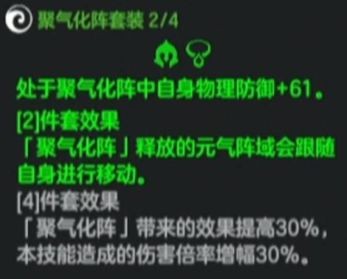 聚气化阵二件套可使阵法以角色为中心生成,并随人物移动。
