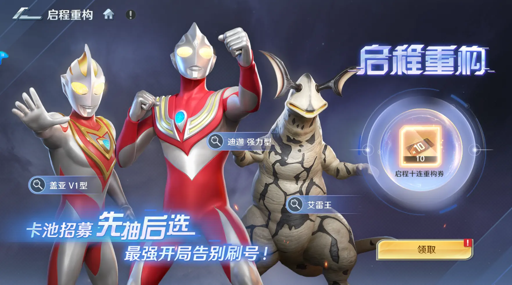 同时,在游戏上线期间,所有光之勇士可在「启程重构」卡池免费领取十张启程十连重构券,并免费从抽取结果中直接领取心仪SSR角色,组队冒险快人一步!