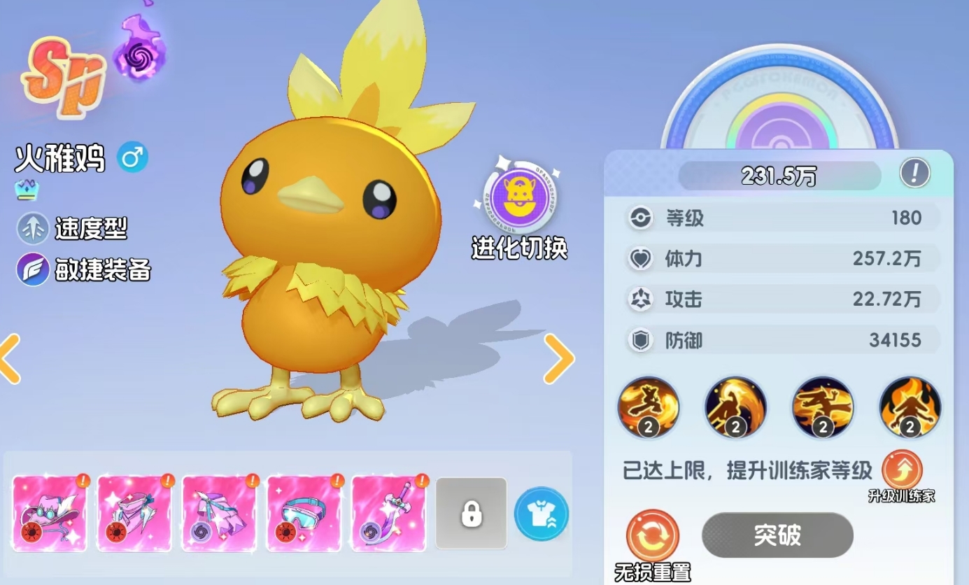《宠物集结》中,火稚鸡可通过深度培养解锁终极形态——超级火焰鸡。该宝可梦并非通过常规抽卡获取,而是需以初始SP品质的火稚鸡为起点,经历完整进阶路径后达成UR品质转化。那么,超级火焰鸡实战表现如何?其综合强度在当前版本中处于梯队前列,具备高爆发、强生存与战术灵活性三重优势,下文将围绕机制、配队逻辑与养成路径展开详解。