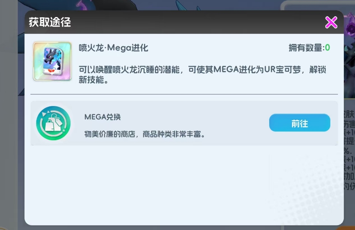 养成路径清晰高效:由于MEGA进化本身已消耗大量资源,超级喷火龙初始练度较高。后续只需继续升阶至品阶上限,即可完成主体养成。进阶强化方面,可通过锻炼系统使用增强剂同步提升力量、技巧、耐力三项基础属性,分别影响体力、攻速与防御;也可在努力值系统中投入宝可病毒,定向优化各项能力成长。此外,招式精通升级、技能等级提升、MEGA进化专属升阶等常规强化模块均不可忽略。