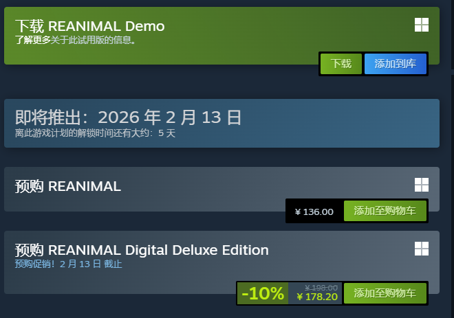 再次提醒:《生灵重塑》发售日为2026年2月13日,Steam平台预购通道将持续开放至发售当日零点前,期间购买任意版本均可享受对应折扣权益,请有意向的玩家合理安排预购时间。
