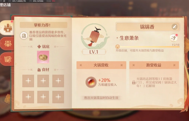 先玩百味寻鲜冲冲冲,获取一些食材后开始,卖出一份可获取几十个万相通宝