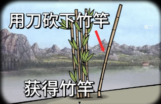5、用刀砍下竹竿获得竹竿