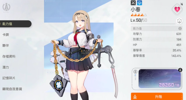 方法一:进入角色图鉴界面,在角色基础属性面板中可直接读取星级数值。该区域同步展示等级、潜力值、卡牌归属、伙伴关联及存档状态等结构化信息;同时支持实时查看攻击力、防御力、HP上限、暴击率与暴击伤害等关键养成维度,便于横向对比角色成长空间。
