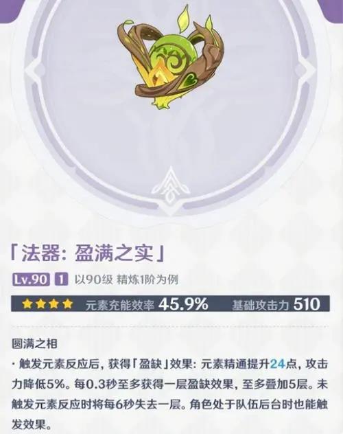以上便是为大家带来的原神盈满之实满级属性介绍,该武器比较适合莫娜、丽莎的。相信看完以上内容现在你已经了解到了法器盈满之实的属性,更多武器属性敬请关注手游网。