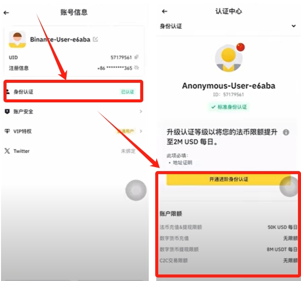 标准认证提供每日5万美元的琺幣出入金额度,满足绝大多数用户需求。进阶认证需额外提交地址证明文件,可获得更高限额。