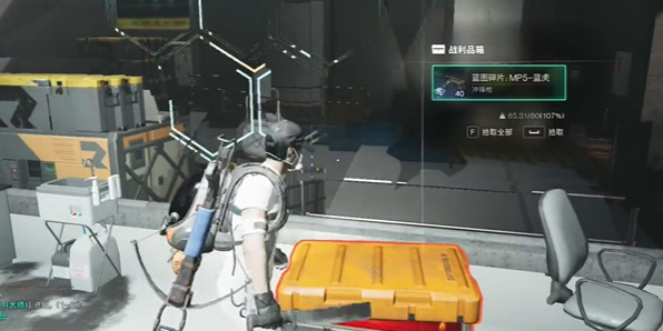 4、玩家进入大门后往右侧走,来到下图房间中就可以看到箱子,开启箱子就可以拿到【MP5蓝虎】武器蓝图。