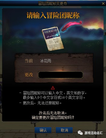[冒险团昵称变更券]只在15周年庆的奖励中出现过,随后1年时间里没有任何获取途径。