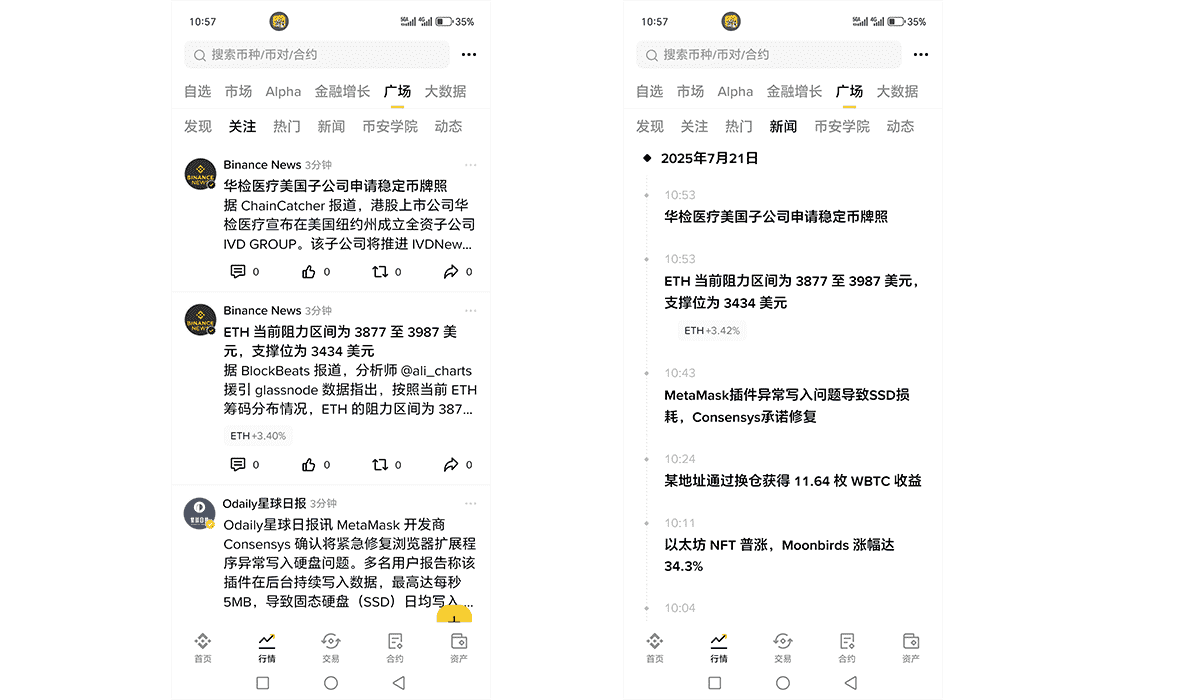 需要特别注意的是,Binance Feed目前仅支持通过移动端应用访问,网页版暂未开放该功能。用户必须下载官方APP才能使用完整服务。