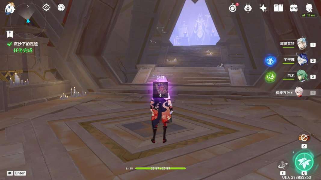 8、最后等对话结束,即可完成任务「沉沙下的足迹」。