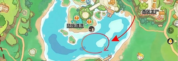 出没位置:隐秘滩涂右下方的湖泊区域。