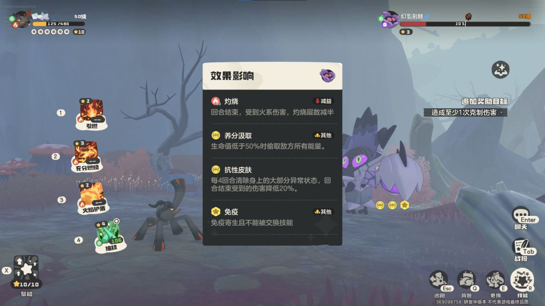 需特别注意两点:一是燃薪虫作为火系精灵,对火系Boss存在克制失效问题,不建议用于对应关卡;二是若敌方具备强力控制技能(如沉默、禁锢、麻痹等),可能大幅限制其技能释放节奏,影响特性与连招发挥。因此,实战中推荐搭配具备灼烧触发能力的队友,或携带解控类辅助精灵,以最大化燃薪虫的战术价值。