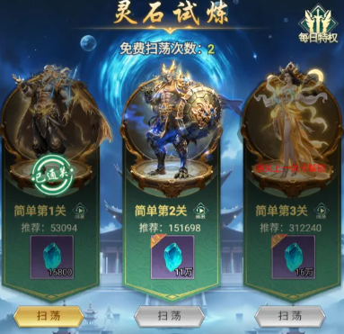 第四类为灵石试炼,直指神将战力跃迁刚需。灵石作为关键消耗型资源,用于神将资质突破、潜能激活及战阵共鸣等核心成长环节。该副本产出稳定、单位时间效率突出,是中后期玩家提升整体队伍强度不可替代的供给来源。玩家可根据当前培养重心,灵活安排挑战优先级,在满足13级前提下精准定位对应副本,实现资源获取效益最大化。