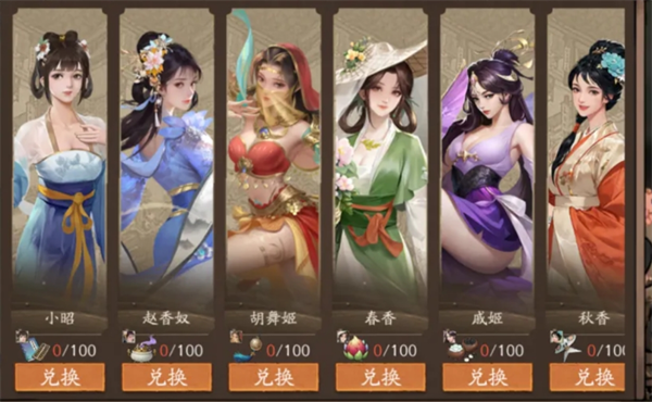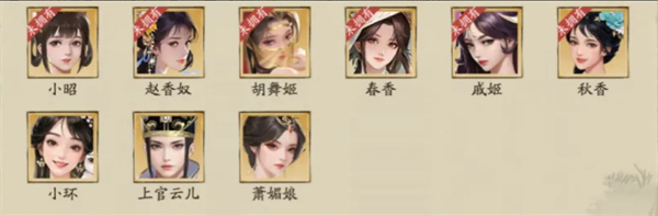 若抽到已拥有的红颜,则可转化为兑换道具,用于在商店兑换该红颜的专属时装。红颜卡池也会定期轮换,首期登场的红颜如下: