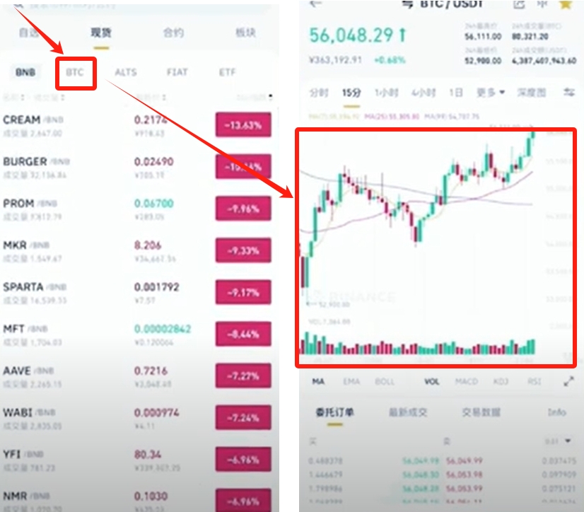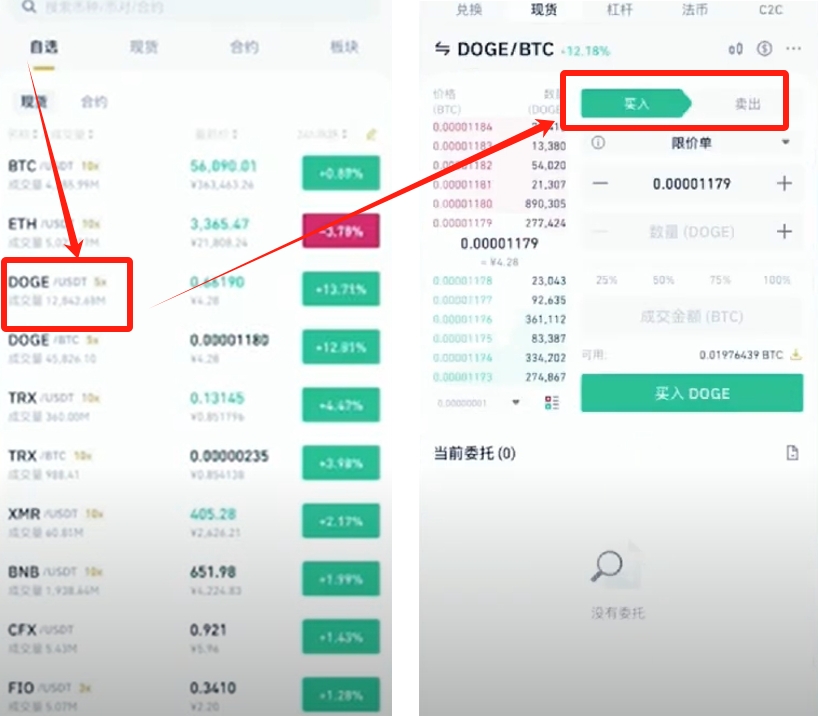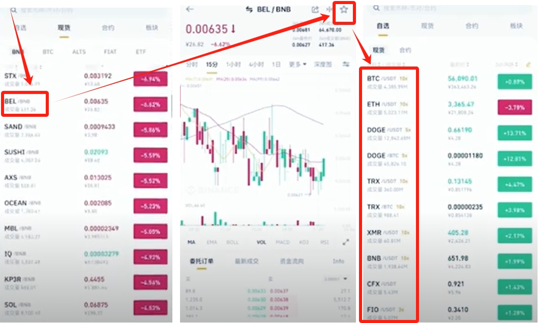 交易操作入口:通过自选列表直接选择买卖对,例如使用USDT交易比特币的快捷通道。