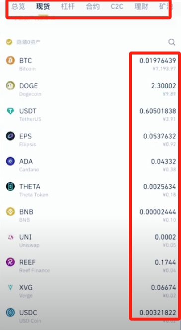资产管理界面:清晰展示各类型数字资产持仓情况,包含现货、杠杆等不同账户的资产分布。