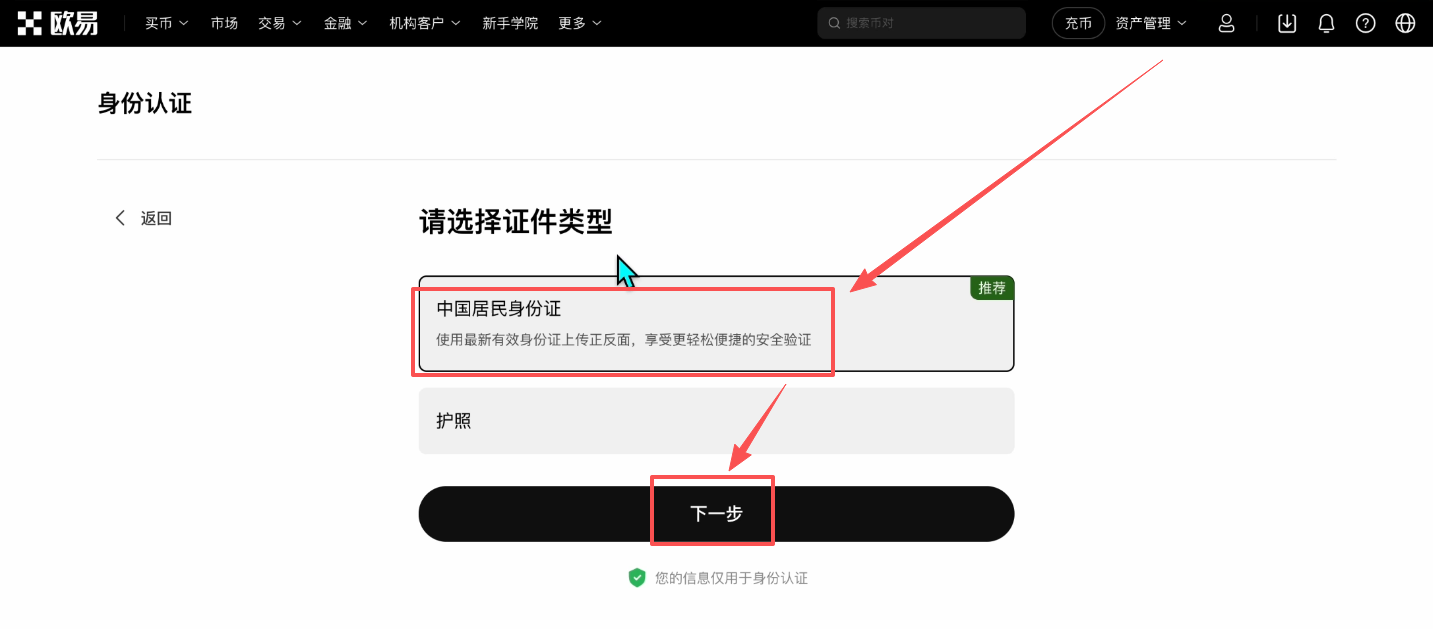 欧易的KYC认证采用智能审核系统,平均5分钟快速通过。认证包含证件上传与人脸识别两个核心环节,需确保提交的身份证件四角完整、无反光模糊。