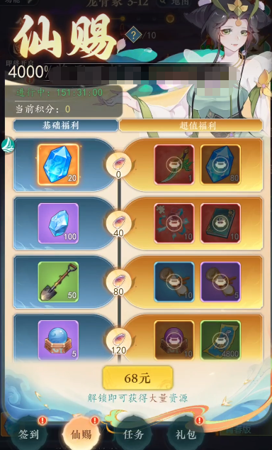 每个游戏里都会有氪金设定,为的是能让玩家有更良好的游戏体验,但大部分的游戏都不会强制氪金,而是让玩家根据需求自由选择,幻世仙途作为修仙游戏,除了能用较为轻松的方式参与修炼之外,玩家可以借助氪金方式,快速提升自身境界,游戏里的氪金方式有很多,玩家可以选择花费68元购买仙赐礼包,购买之后玩家可以连续领取多天奖励,达成特定修炼要求之后,除了基础福利之外,还会获得额外的超值福利,大部分都是对于玩家比较重要的晶石。