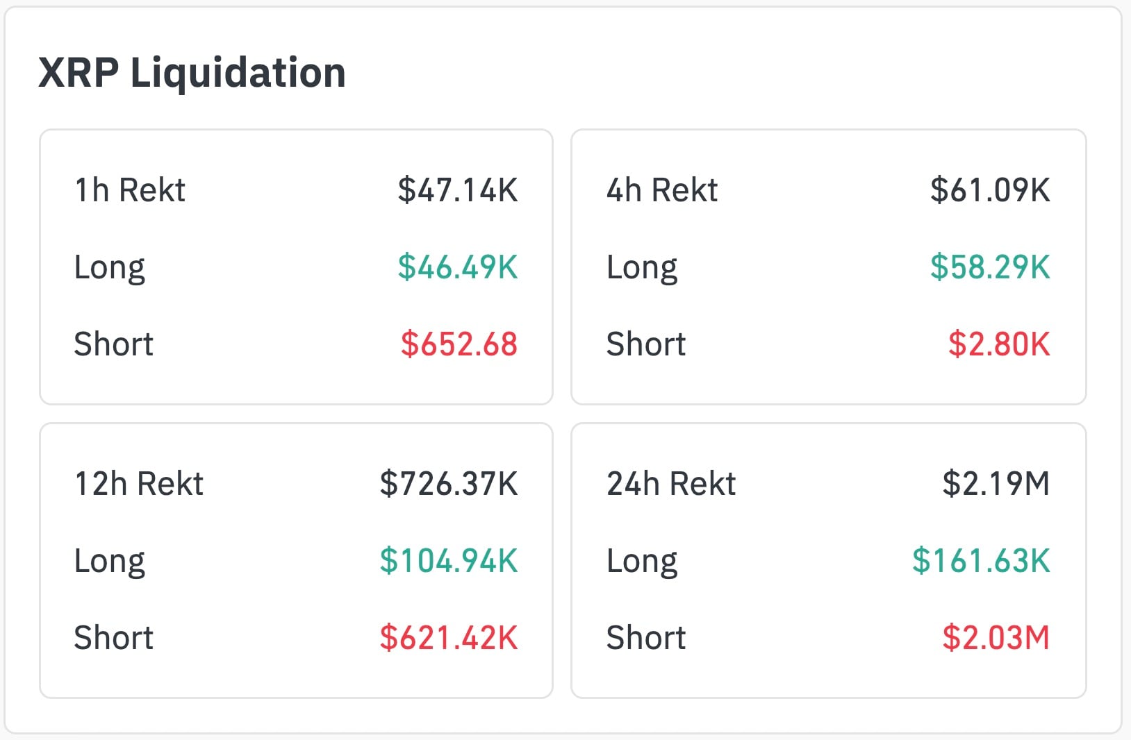 过去24小时内,随着地缘z治局势好转,XRP价格回升至1.34美元水平,引发空头清算量激增,导致清算失衡率达到1237%。根据CoinGlass数据,空头清算金额达203万美元,而多头清算金额仅为161,700美元。