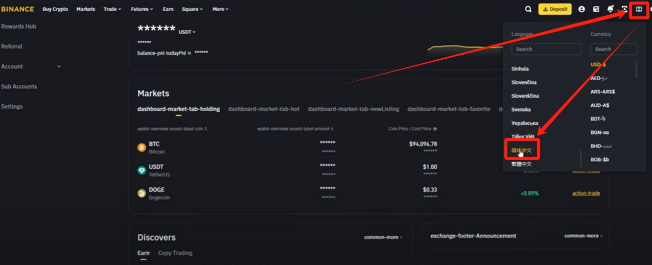 完成所有认证后,您就可以开始买卖加密货币了。如果界面显示为英文,可通过点击右上角地球图标切换为简体中文,方便操作。