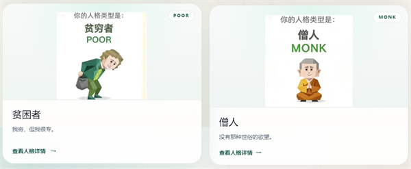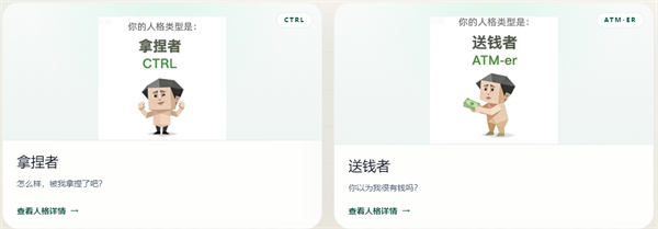 用户需完成约31道问题,系统根据答案匹配15个维度,最终生成一个带有网络梗属性的标签(如“拿捏者”“送钱者”“僧人”等),并附上幽默解读。