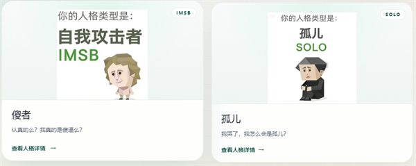 SBTI人格测试全称Silly Big Personality Test(趣味大人格测试),是近期在社交平台上迅速走红的一款娱乐向人格测验。它借鉴了 MBTI 的人格分类思路,却用搞怪、自嘲又无厘头的标签打破了传统性格测试的严肃氛围,以下是测试的官网入口,大家可以去试试自己是什么人格。