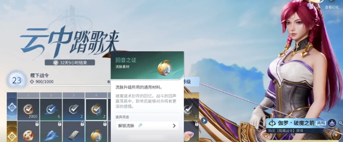 进阶资源方面,“回音之证”用于激活流脉节点,直接提升角色基础属性;“凝露彩瓶”则是参与流光试炼的必要消耗品,可稳定产出大量养成材料。此外,战令还包含伽罗专属幻化外观、武器皮肤及技能特效,兼顾战力成长与视觉表现,综合性价比突出。