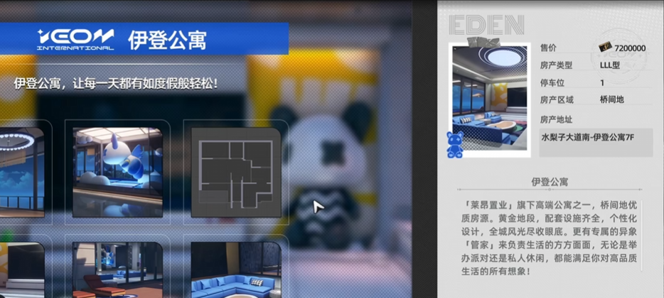 伊登公寓则体现顶级居住体验:双开式气派大门、透明观光电梯、专属管家服务、独立户外泳池。其室内可自由规划面积远超维纳公寓,是资金充裕玩家的理想之选。