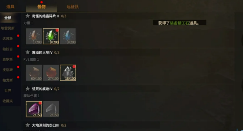 怪物图鉴主要收录各大陆野外怪物掉落的稀有玉石。解锁途径有三:野外击杀随机获取、交易所直接购买成品、或使用原石碎片合成替代品。若资源储备充足,推荐优先选择交易所采购,可大幅缩短收集周期,规避重复刷怪的时间成本。