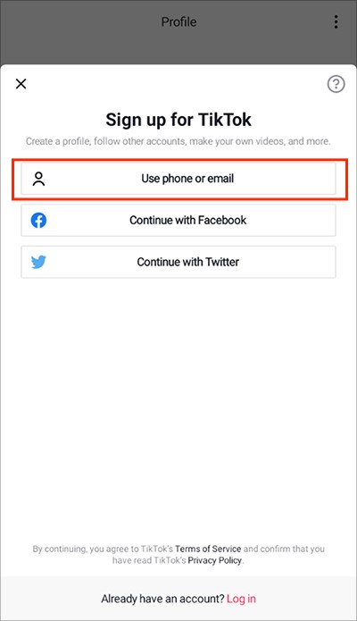 2.在注册方式选择界面,选取"Sign Up With Phone or Email"选项