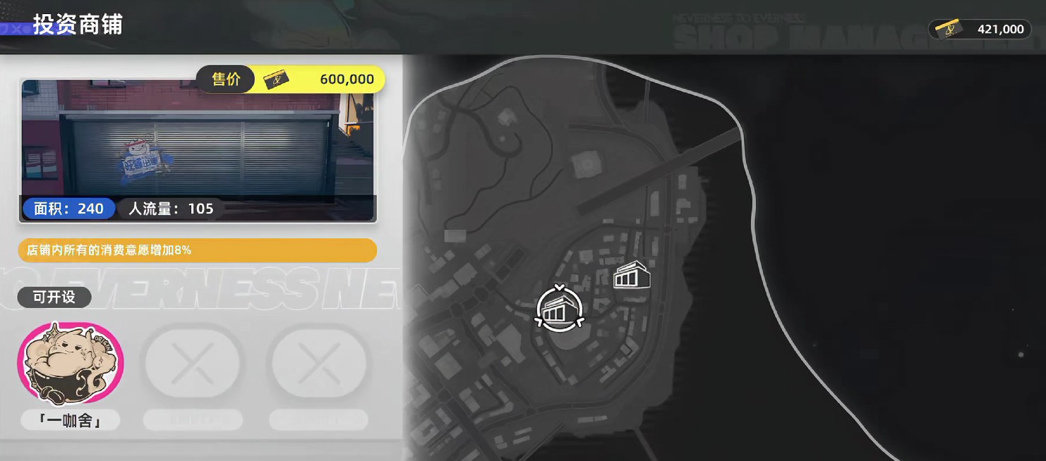 而在整个游戏当中,玩家可以租赁或者是购买的店铺主要集中在咖啡店、甜品店、便利店等等,餐饮与零售。