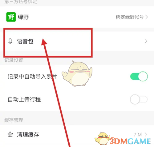 打开六只脚App后点击右下角的“我的”进入个人主页,再点击右上角的“设置”图标,在设置页面中找到并点击“语音包”选项,进入后即可选择“播报内容”并打开相应内容的开关,就能在记录户外行程的过程中收到对应的语音提示了。