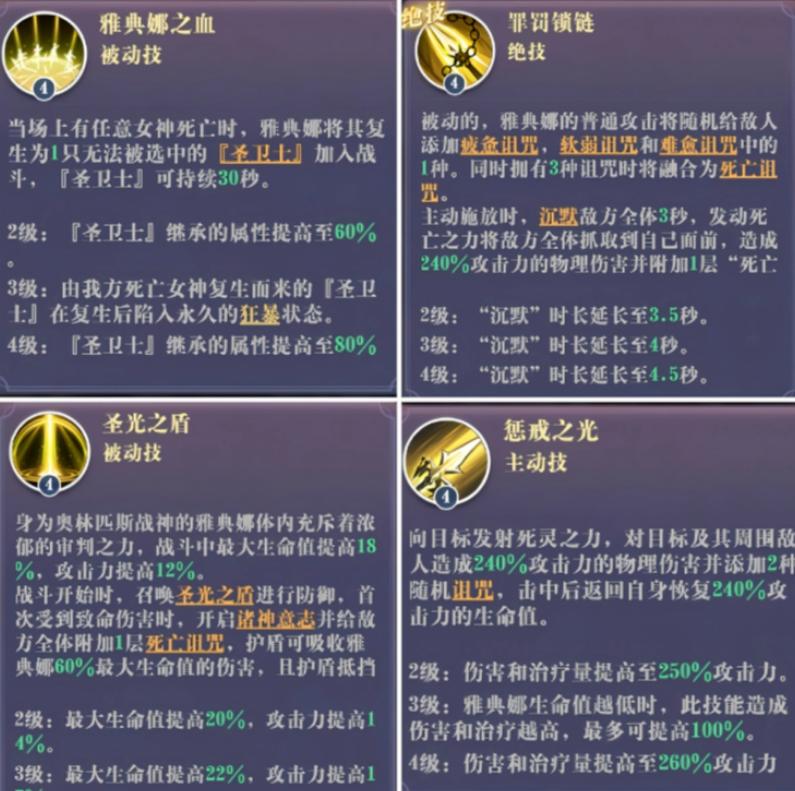 作为诸神系限定角色,雅典娜在当前版本中具备显著的强度优势。其核心输出能力体现在大招:对全体敌人造成240%倍率的物理伤害,并强制聚怪+沉默(最长4.5秒),同时施加1层诅咒。该倍率按单位独立结算,面对满编5目标时总伤害量达1200%,兼具范围压制与节奏控制能力。