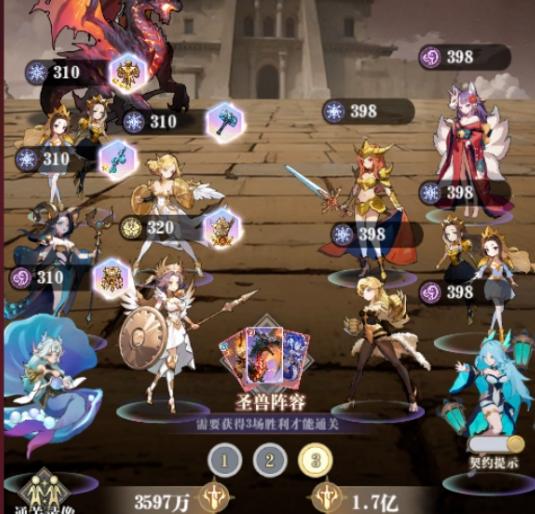 三技能“圣光盾”提供多重生存保障:立即提升基础生命与攻击力,入场即生成持续10秒、减伤25%的护盾;2阶觉醒后获得免疫控制效果;3阶升级后每15秒可再次召唤护盾(持续5秒)。神器6星专属效果进一步强化输出,在护盾存在期间额外获得40%攻击力加成。