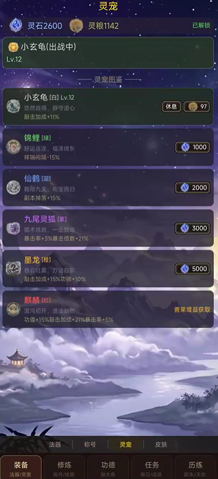 作为典型放置向修仙产品,《积点功德》支持离线挂机收益——即使关闭应用,功德仍可持续增长。此外,游戏内置功德塔挑战、随机生成秘境探索及周期性日常任务等多元内容模块。随着角色战力逐步提升,玩家可解锁更高难度副本,并从中获取额外功德与稀有养成材料,形成正向成长循环。