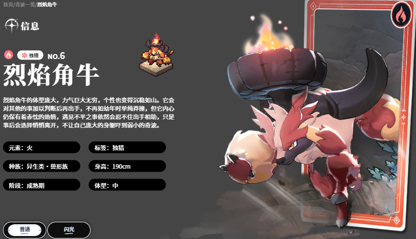 首推火系主力——烈焰角牛。其核心技能为蓄力型矩形范围打击,单次释放可对区域内敌人触发6段连续火属性伤害。在角色协同加成下,同步提升攻击、暴击率与暴击伤害三项基础属性。虽初始数值增幅温和,但随等级提升,其施加的火元素抗性削弱效果愈发显著,大幅强化火队整体输出效率。此外,烈焰角牛具备短距瞬移能力,可快速切入敌阵实施近身压制,兼顾机动性与爆发稳定性。