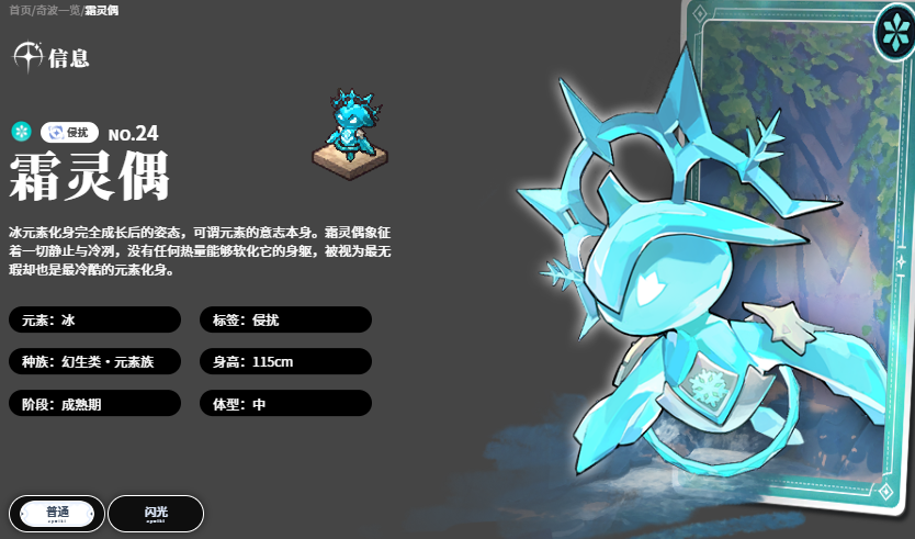 冰系领域型奇波霜灵偶,拥有当前版本最强的范围持续伤害能力。其领域技能可对范围内敌人造成总计1300%冰属性伤害,并同步削弱目标魔法防御与物理防御。该效果与元素克制机制深度联动,显著放大冰队对火、风等弱点目标的压制力。“寒冰之法”作为核心大招,可召唤5枚冰刺同步突刺,每枚造成50%冰属性伤害,共计250%倍率输出。凭借稳定的领域覆盖率与高额减防增益,霜灵偶已成为冰元素阵容不可替代的核心输出与功能枢纽。