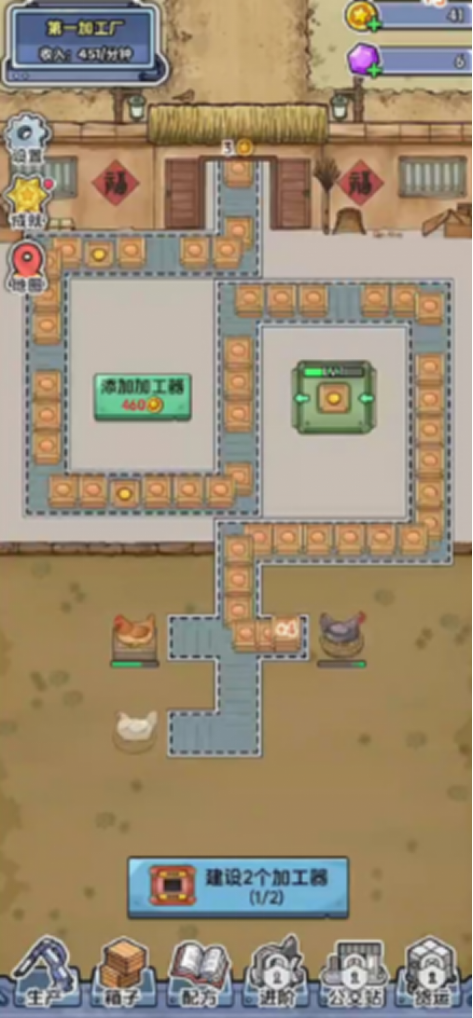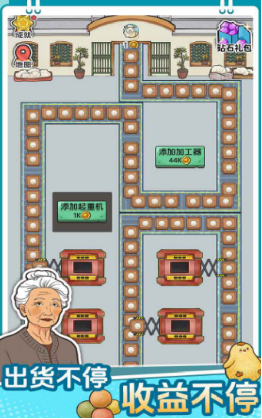 本作主打“轻操作、重策略”的模拟经营体验。玩家将从零起步,逐步解锁五大主题工厂:涵盖原料初加工、组件装配、精密制造等不同生产层级。通过合理布局传送带、配置分拣器、升级合成设备,实现原材料到高附加值商品的全自动转化。每条产线均需兼顾吞吐效率与资源配比,避免拥堵与空转,考验玩家对产能节奏与升级路径的全局判断。