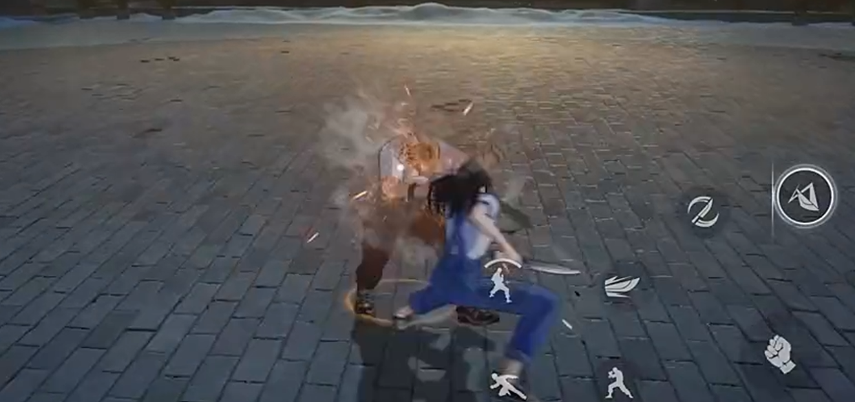 推荐起手方式为三段基础推掌接突进斩击与飞踢,该普攻序列可稳定触发敌人浮空状态,为后续技能提供理想衔接窗口。紧随其后释放一技能“猛龙过江”,该技能具备位移+牵引双重效果:命中后将目标强制拉回,并连续执行两次斩击——首段造成击飞,第二段形成击退,既保障连招完整性,又在团战中实现精准控场,为队友创造集火时机。