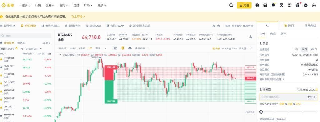 币安网格交易支持U本位和币本位合约。用户可自定义网格参数,包括价格上下限及网格数量。系统会根据设定自动执行买卖操作。