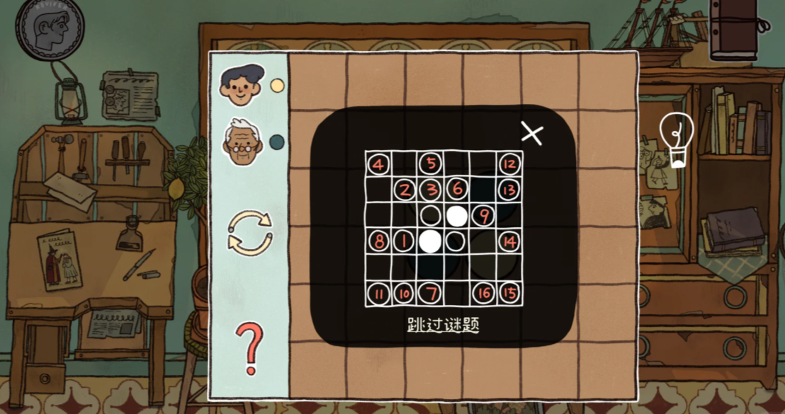 8、【男主1917】点击书桌上的大量杯,获得容器。点击凳子上的小包,获得绳子。用绳子把溜冰鞋绑起来,送到1916鞋子边上(窗外雪人的鼻子和手臂可以点击旁边地上的树枝组装,太可爱噜!)。点击桌上出现的画,玩游戏,答案是:太阳/猫,然后按住道具调整角度攻击怪兽,有绿植和箩筐时,只要利用物与物之间的反弹碰到龙即可。